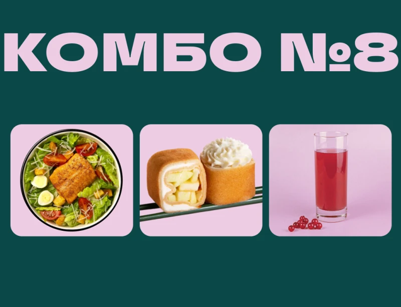 САЛАТ С ЛОСОСЕМ, РОЛЛ ЯБЛОЧНЫЙ, МОРС КЛЮКВЕННЫЙ 300мл ДОПОЛНИТЕЛЬНЫЕ АКЦИИ И СКИДКИ НА КОМБО НЕ ДЕЙСТВУЮТ